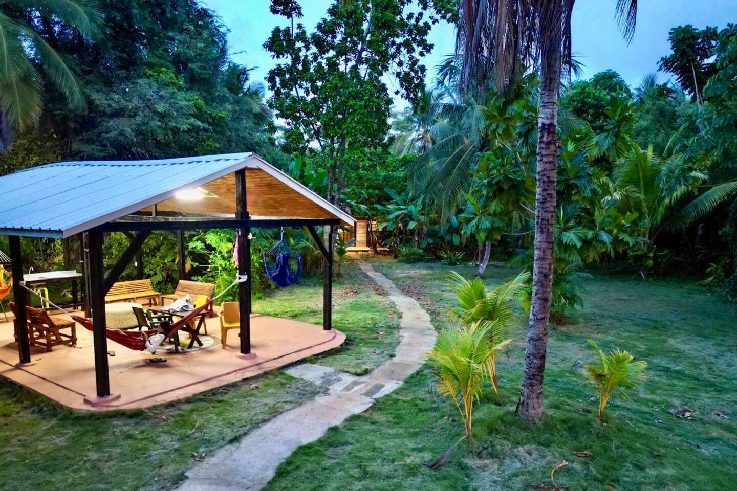 🏡 Villa Verde is a Caribbean-style villa in a quiet area of the island. Enjoy 6 bedrooms and 5 bathrooms, simple and functional, each with A/C for a comfortable sleep. Every bathroom has hot water showers — a rare treat in San Andrés! 🌴 The entire property is yours: house, pool, two kiosks (pavilions), and about 3,000 m² of gardens, only a 5-minute walk to the ocean. 🦎 Villa Verde blends authentic island charm with modern updates — a fantastic pool, tropical grounds, and total privacy. This isn’t a resort; it’s a place to unwind, reconnect with nature, and enjoy the real Caribbean. ===BEDROOMS AND BATHROOMS=== 🛏️ 6 bedrooms, 5 bathrooms — we can accommodate up to 18 people, but limiting your group to 14-16 is recommended for maximum comfort - Main Bedroom (Master Suite): king bed + balcony with hammock + full private bathroom - Guest Bedroom: double bed + bunk bed + full private bathroom + walk-out to pool - Guest Bedroom: double bed + twin bed + full shared bathroom + walk-out to back patio - Guest Bedroom: double bed + bunk bed + full private bathroom + walk-out to back patio - Guest Bedroom: double bed + full shared bathroom adjacent to room - Guest Bedroom: double bed + twin bed + full shared bathroom adjacent to room ❄️ All bedrooms are air conditioned 🔑 All bedrooms have key-lockable doors for privacy and security 🚿All bathrooms feature hot water showers +++COMFORT AND AMENITIES+++ 🏊 Large new pool with Bluetooth speakers, lounge chairs, and night lighting ⚡ Fast Wi-Fi (200–300+ Mbps) indoors & outdoors 🍳 Kitchen: 2 sinks, 2 stoves, 2 refrigerators, microwave, air fryer, blender, French press, coffee maker, utensils, plates, pots, pans, cold drinking water, and more! 🌞 Two kiosks (covered pavilions/pagodas): one with Bluetooth and a grill, both with seating for large groups 🍖 Outdoor cooking + hammocks + indoor & outdoor dining areas 🧺 Laundry facilities on site 🅿️ Free parking on the property 📹 Exterior security cameras ➡️ Villa auténtica del Caribe, con piscina nueva, aire acondicionado en todas las habitaciones y agua caliente en todas las duchas.